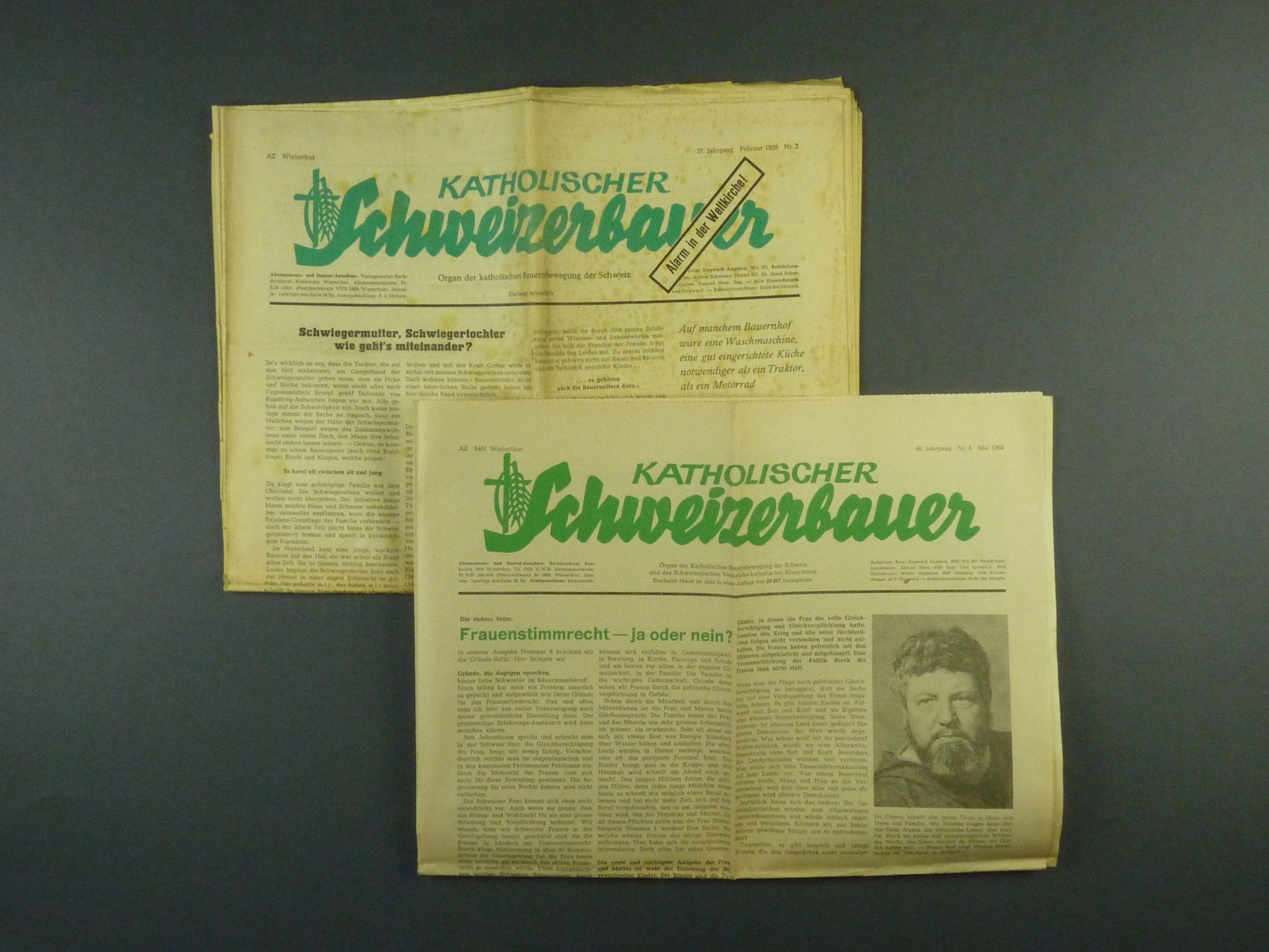 manchmal ist nicht die ganze Zeitung vorhanden; In jeder Ausgabe einige Frauenartikel, z. B. Teil "Die Frohe Bäuerin" oder zum Frauenstimmrecht "Frauenstimmrecht - ja oder nein?".
